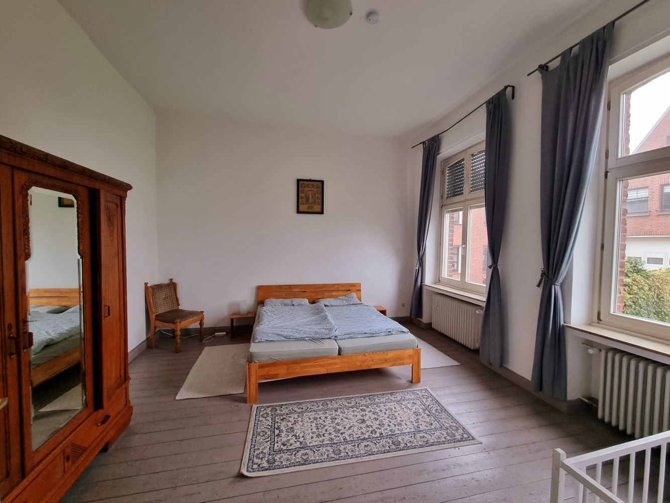 Inmitten des beschaulichen Städtchens Kervenheim liegt das 1870 erbaute katholische Pastorat der Pfarrgemeinde St. Antonius. Unmittelbar umgeben von einer alten Wasserburg, der Kirche, den urigen Stadthäuschen und den Wiesen eines Trakehner-Gestütes. Für Ihre persönlichen Ferien- und Auszeiten können Sie Mieter dieses idyllischen Domizils werden. Wohnen Sie im Zimmer des „heiligen Petrus“ oder der „frommen Marie“ und genießen Sie in neu renovierten Räumlichkeiten, jedoch mit dem Flair des 19. Jahrhunderts (inklusive Nutzung der damaligen technischen Erfindungen "elektrisches Licht" und "warmes Wasser") eine erholsame Zeit. Mit dem Charme des Erbauungsjahres begegnen Ihnen Überbleibsel der Erstausstattung und erinnern an alte Zeiten. Unser Ferienhaus das „alte Pastorat“ bietet eine Vielzahl an variablen Wohnmöglichkeiten. 26 Betten, verteilt auf neun Schlafzimmer, können hier maximal gefüllt werden. Das Haus lässt sich auch wunderbar aufteilen. Insgesamt drei Wohneinheiten können gemeinschaftlich genutzt oder getrennt bewohnt werden. Die Wohnung im Erdgeschoss ist barrierearm, alle Zimmer und Bad lassen sich mit dem Rollstuhl erschließen. Jede Wohneinheit ist ausgestattet mit separatem Bad und Küche. Morgens durchstreicht frischer Brötchenduft des naheliegenden Bäckers die Pastoratsstraße, fußläufig haben Sie hier eine Verpflegungsmöglichkeit. In direkter Nähe zum Rouenhof (5 Minuten Fahrradweg) sind Sie dort jederzeit herzlich Willkommen. Können mit den Ziegen um die Wette meckern oder sich des Lebens freuen bei einer Paddeltour oder einer Hofführung. Eine Stärkung können Sie in unserem Hofcafé einnehmen. Bei Bedarf kann ein wöchentlicher Shuttle eingerichtet werden. Kervenheim liegt direkt an der „Niederrhein-Route“. Mit dem Rad (niederrheinisch = Fiets) lässt sich herrlich die Umgebung erkunden, vielleicht mal im Nachbarland Holland vorbeischauen oder den Gevatter Rhein begrüßen ? Auch das zum Glück nie in Betrieb gegangene Atomkraftwerk in Kalkar, heute ein Freizeitpark, oder das in Twisteden gelegene “Irrland“ sind beliebte Ausflugsziele für Familien.