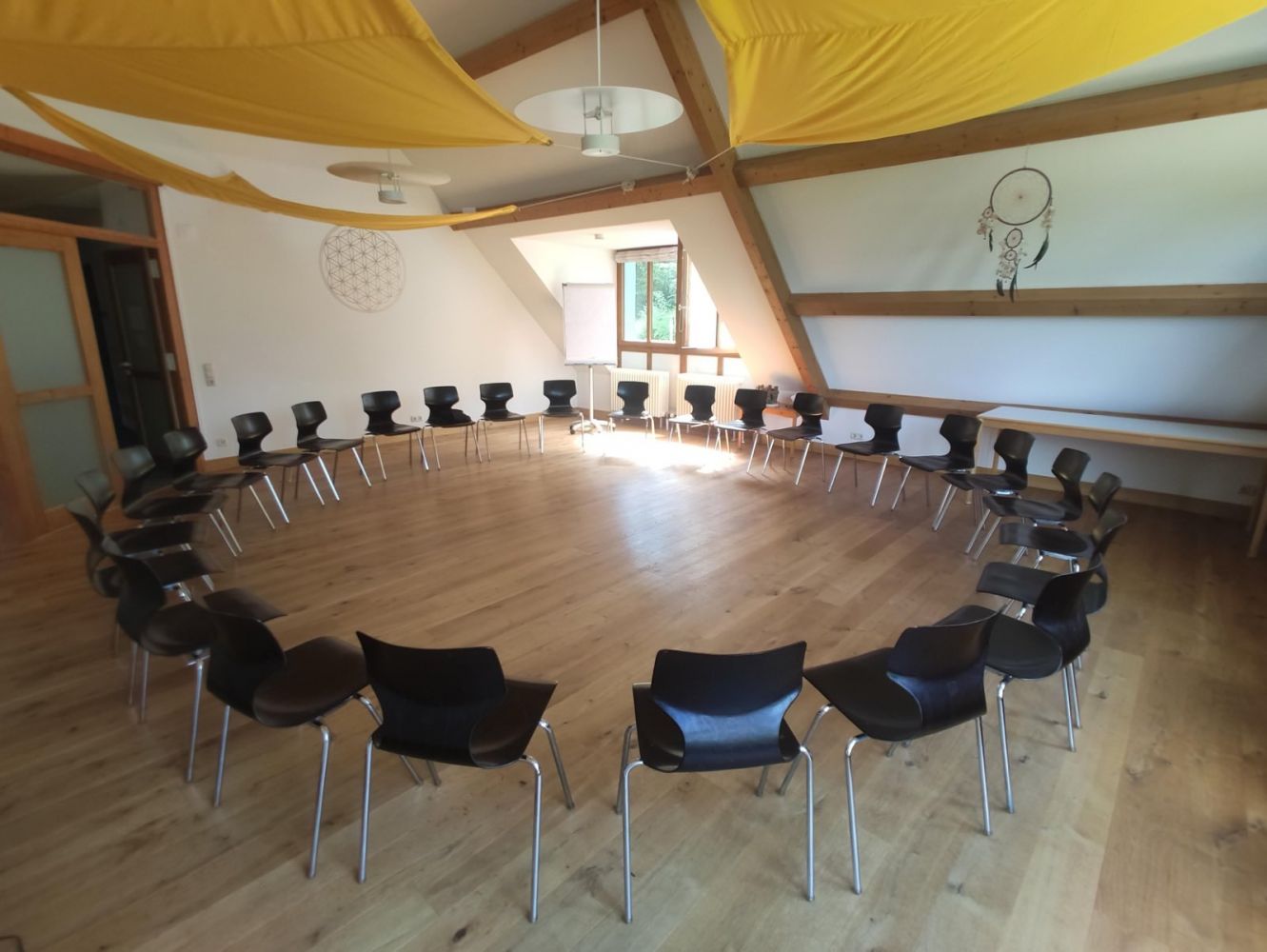 In den Sommermonaten steht ein naturnaher Veranstaltungsplatz im Pappelwäldchen zur Verfügung – mit Zirkuszelt (76 m²), Draußenküche, Feuerstelle, Jurte und einfachen Spielmöglichkeiten. Der Ort eignet sich für Retreats, Hochzeiten oder kleine Festivals bis zu 300 Personen mit flexiblem Format.