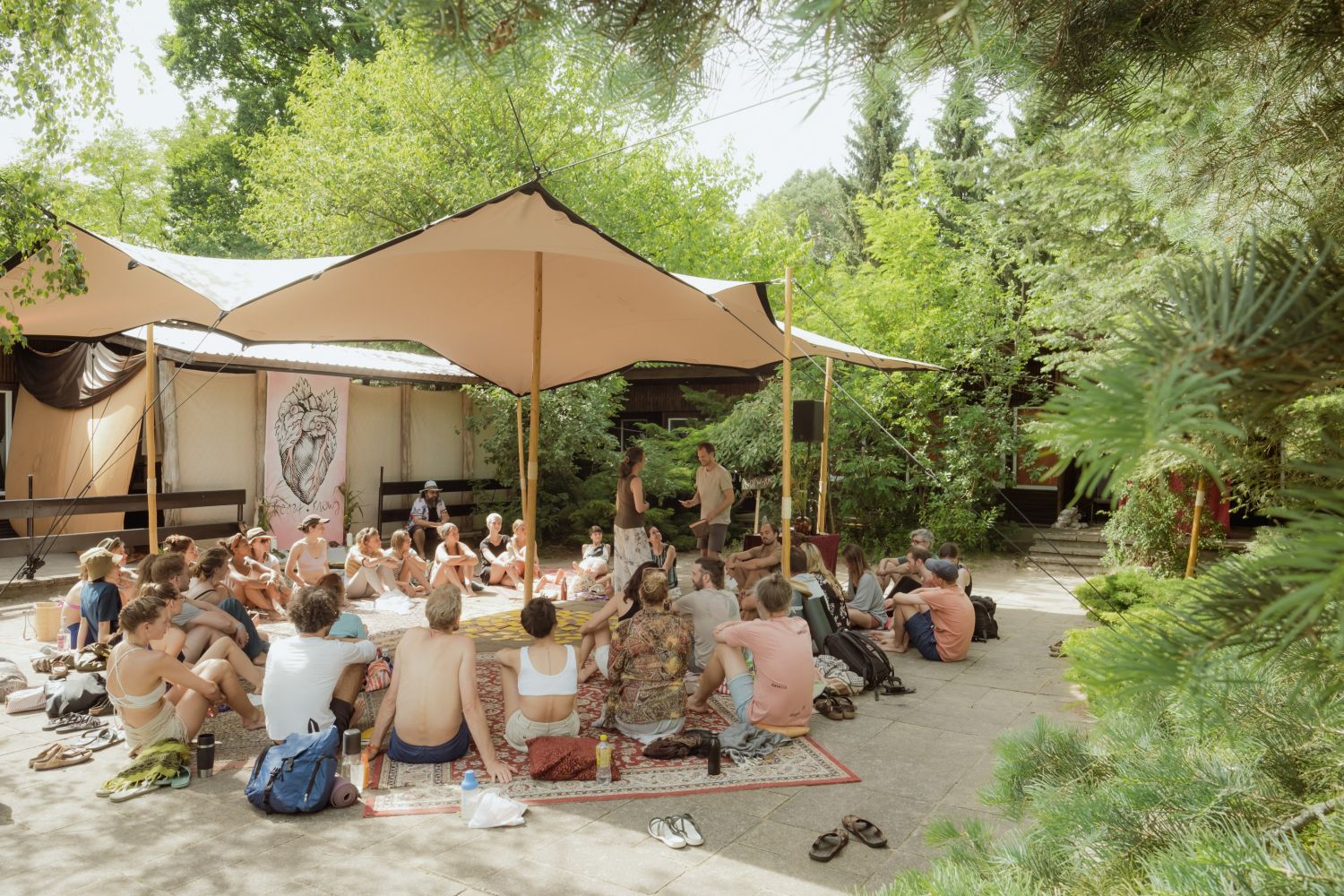 Es steht ein großer Gemeinschaftsraum (ca. 70 m²) mit zusätzlichen Toilettenräumen und einer voll ausgestatteten Selbstversorgerküche( alles zusammen ca. 120 m²), Terrasse und Vorplatz mit W-Lan Internetzugang zur Verfügung.