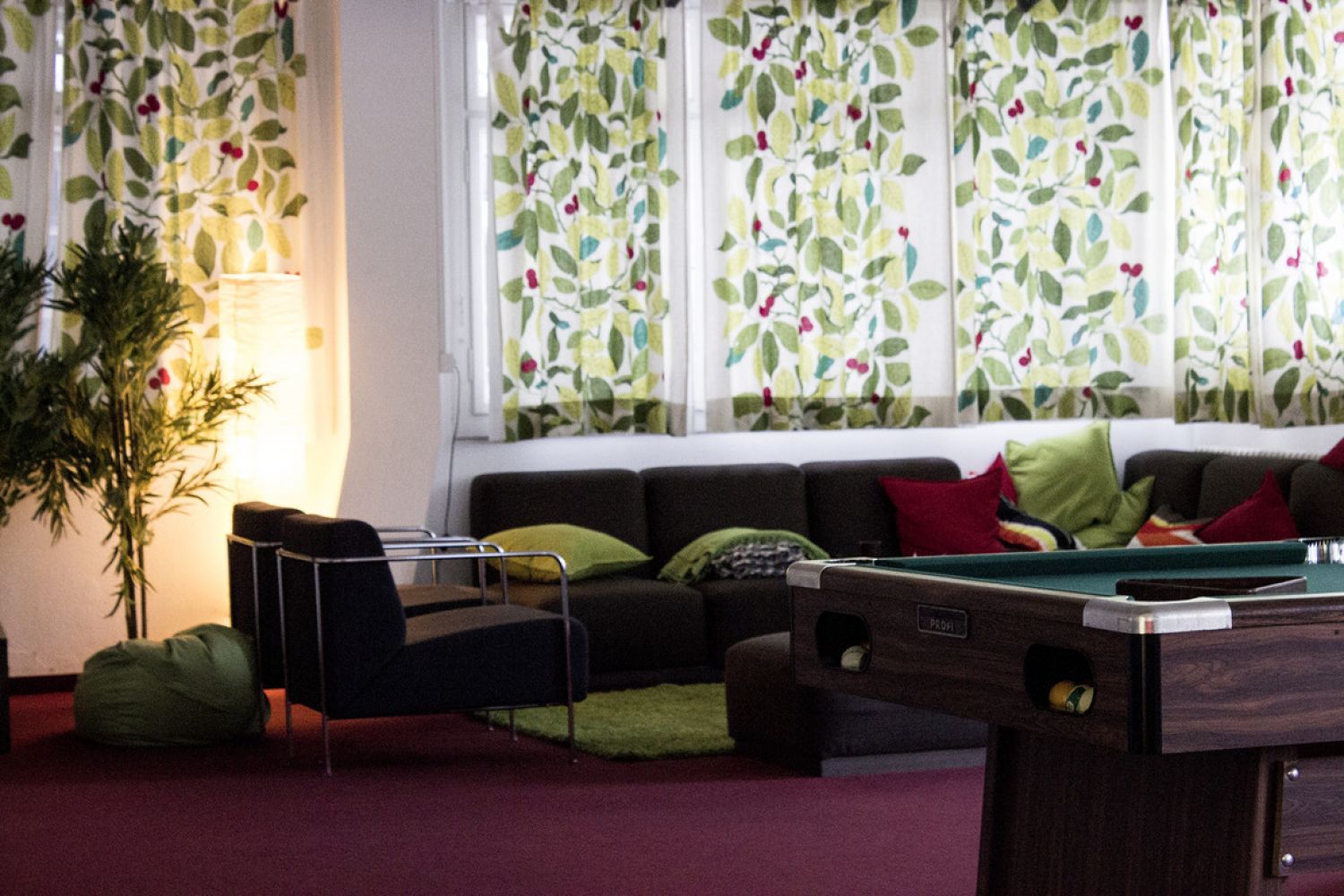 Das Haus Waldschlössli verfügt über einen Aufenthaltsraum mit Kicker, Tischtennisplatte und weiteren Spielen (ca. 100 m²). Zudem gibt es 3 Speisesäle und ein größeres Stübli (ca. 50 m²). Ein Beamer und eine Leinwand sind vor Ort und können im Aufenthaltsraum oder im Speisesaal aufgebaut werden.