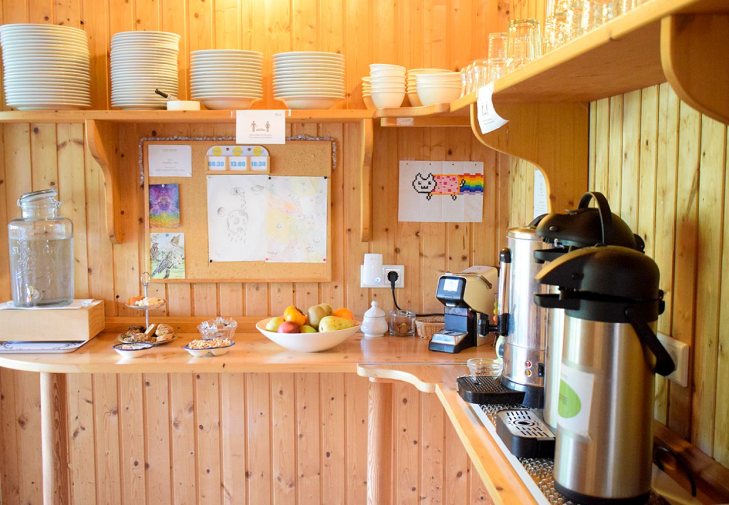 - Ganztägigen Zugang zu Tee, Wasser, frischem Obst und Keksen