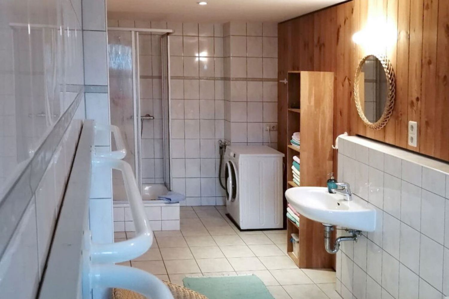 Im Parterre und im Dachgeschoss gibt es jeweils ein kleines Bad mit Dusche und WC.